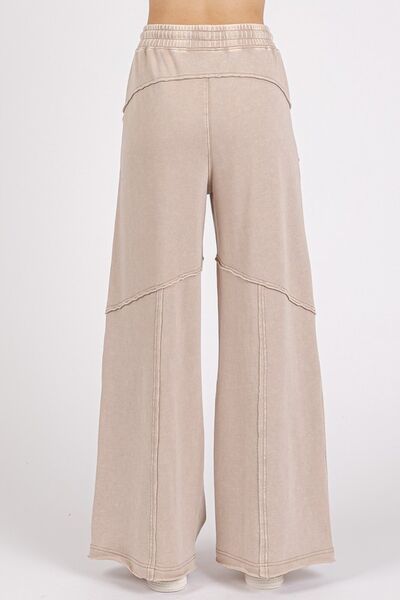 The Asymmetric Seam Mineral Wash Elastic Waist Pants are a modern and edgy option for your wardrobe. The mineral wash adds a trendy and unique touch to the fabric. Featuring asymmetric seam detailing, these pants offer a stylish and eye-catching design. The elastic waist provides comfort and adjustability for all-day wear. Perfect for a casual yet fashion-forward look, these pants can be paired with a simple top and boots for a chic outfit.