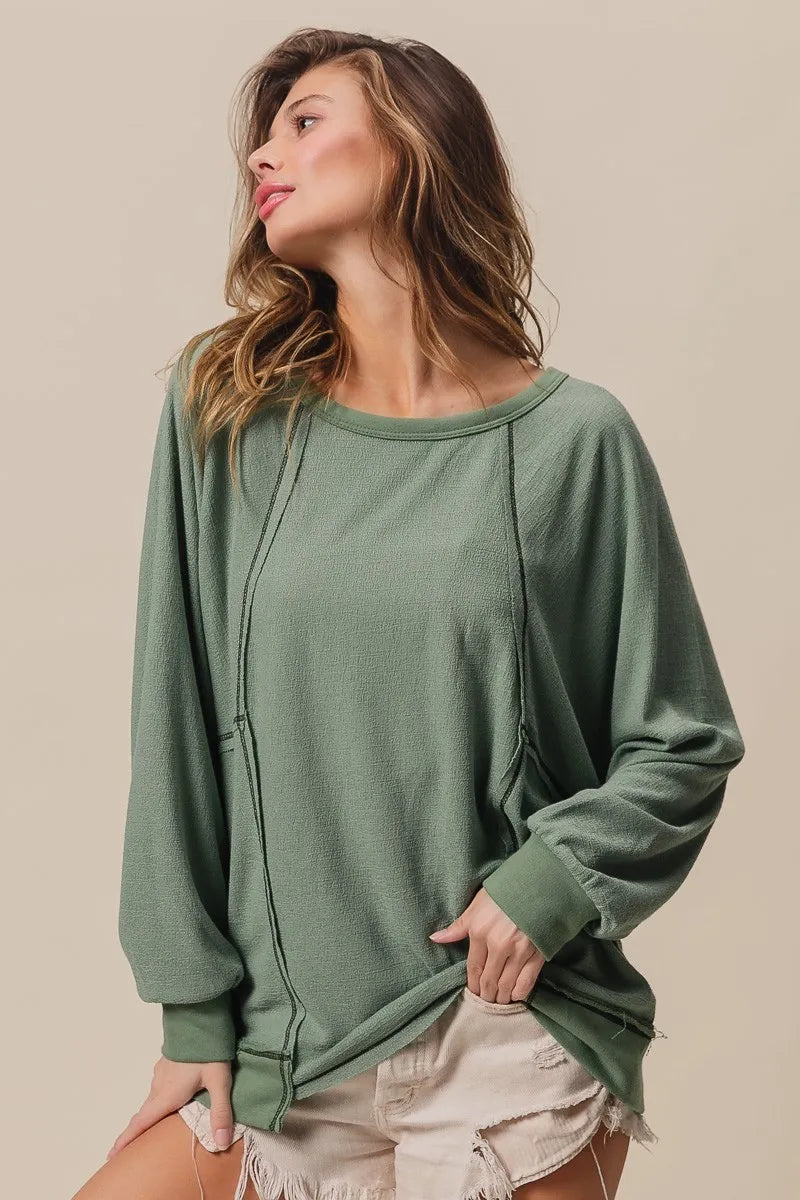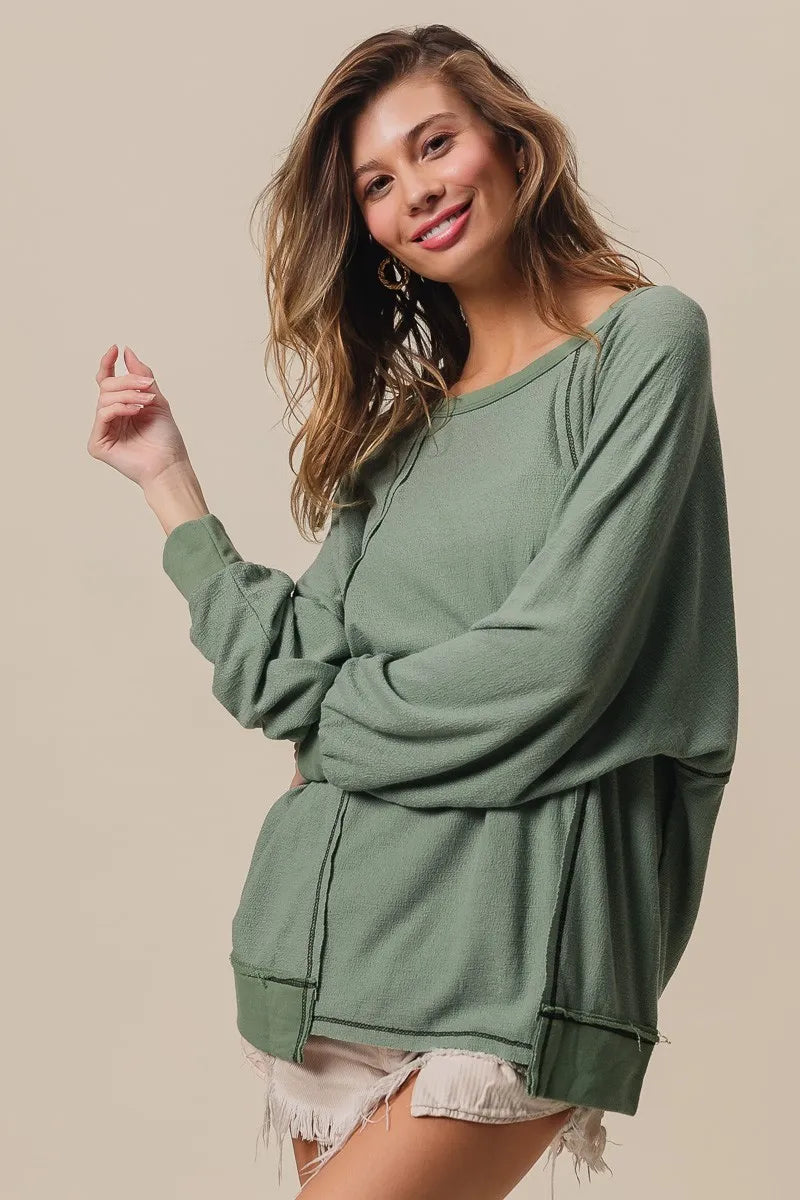 BiBi Cross Hatch Knit Uneven Hem Cont Lslv Top